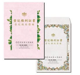登記識別情報の封筒と表紙に印刷するだけではなく、用紙の色を変えたり、デザインを変えることも可能。